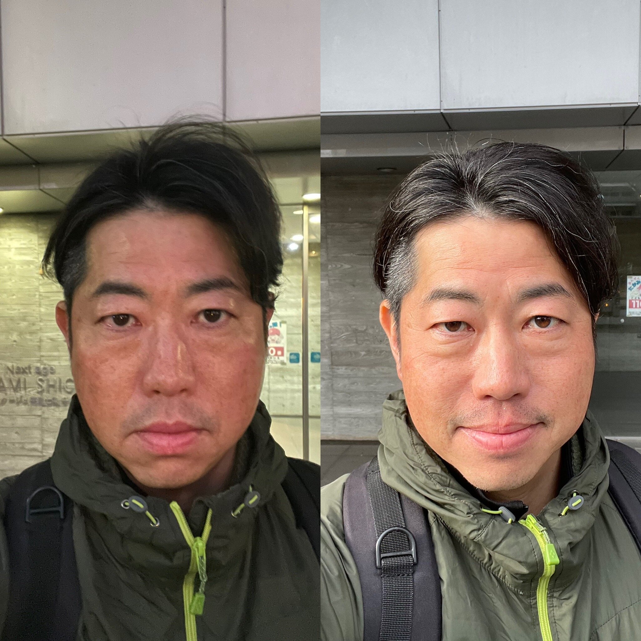 自分の顔を撮影して出発前と比べると、