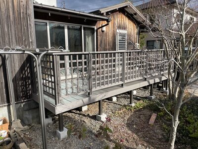 既存ウッドデッキは木製でしたので、色あせや劣化が早く、数年ごとのお手入れが必要でした。